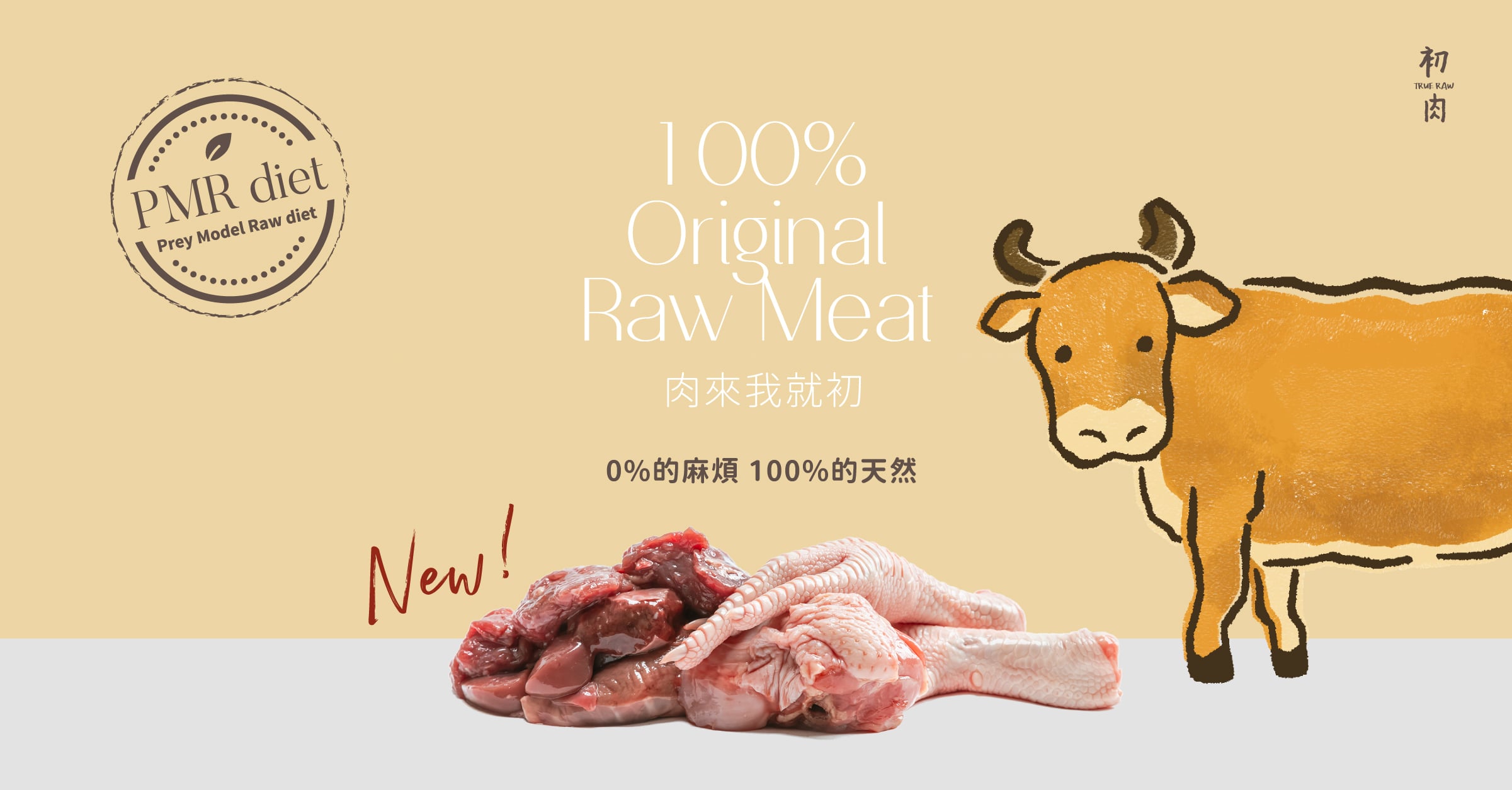 採自PMR完全模擬獵物生食法為基礎,由CertCN認證的美國寵物營養師設計配方,追求動物最原始的營養來源-原型生肉,