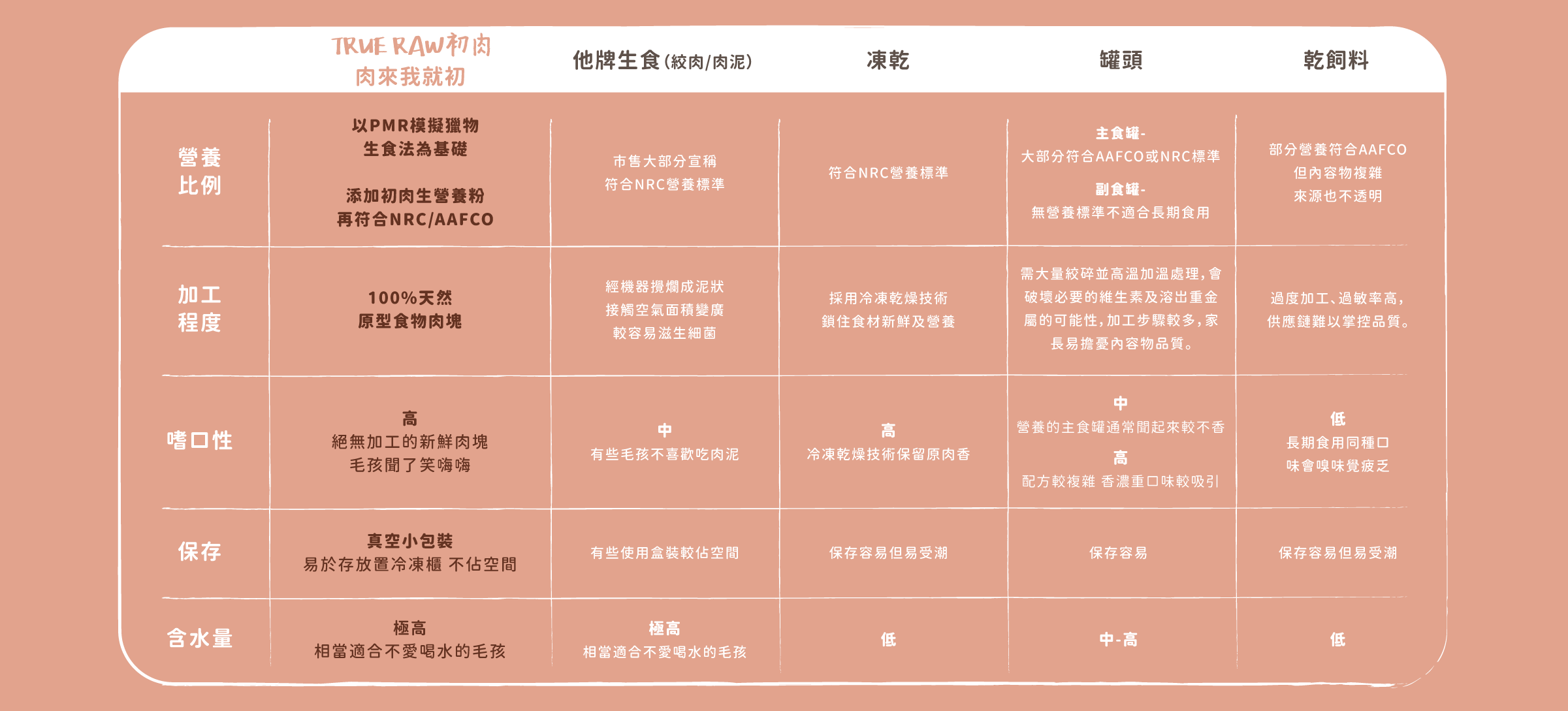 符合國際營養標準NRC/AAFCO,專屬毛孩的「天然原型」均衡飲食方式。